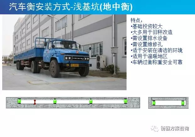 淺基坑是指汽車衡安裝在基坑里,秤臺(tái)表面與地面相平的安裝方式;