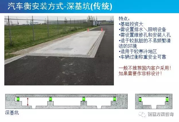 無基坑的汽車衡在高出地面安裝,可以經(jīng)常性的清潔,不積水,費(fèi)用比較便宜;